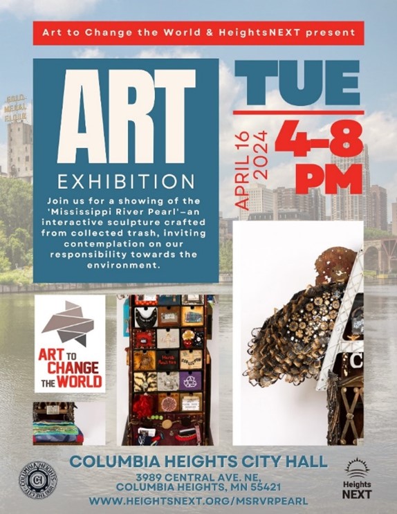 ACW Director Barbara Bridges will unveil the “Pearl” and recount the inspiring story of the ten individuals who dedicated two hours to collecting river debris and then dozens of hours creating to bring it to life. Additionally, she will engage attendees with an interactive activity. Columbia Heights resident Neil Granlund, a scientist, will join her, providing an engaging water-themed science experience. Barbara Bridges, Neil Granlund, and Mayor Amáda were integral members of the ten creators behind the “Pearl“.