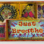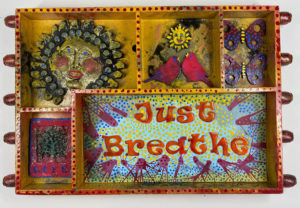Pivoting from needlepoint to paint, in 2006, she began a watercolor journey through brightly colored boxes that are both two and two-and-a-half-dimensional, rings and links that celebrate personal connections and friendship; hundreds of whimsical creatures; four years of Image-a-day painting which, when channeled through Photoshop, has allowed her to create thousands of digital magical images, and more.