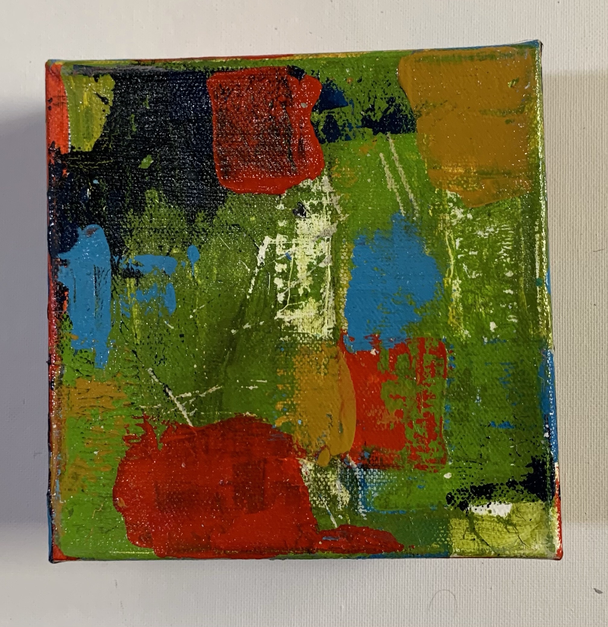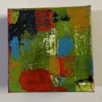 The popular ‘Fireflies’ series is part of Price’s move to a zero waste studio. The tiny paintings are only 6” x 6” but make a big statement! Created from disappointing paintings, studio scraps and trash otherwise destined for a land fill.