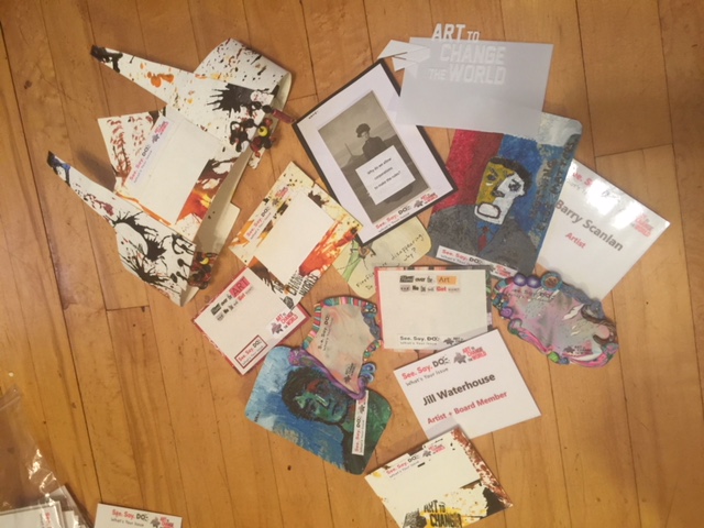 Name tags for the Oct 5 Friends Fundraiser are small artworks by participating ACW artists. Join us and support our dream of providing