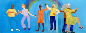 This painting is symbolizes the idea that even if we have experienced trauma in our lives, we can put pieces of our memories together and find a way to introduce play back into our routines and find joy.
