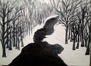 This painting was created for the “My Earth” show. We Artists, were exploring different things that have impacted our earth.