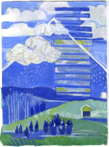 Towers is a mixed media collage about imaginary travel. There was a time that I wanted to travel when I had no funds to do so. So, I decided that I would collage my way there, a method of finding another path when the typical way is obstructed. I also wanted to reveal aspects of a place that wasn’t one dimensional. It’s about how a place can have wondrous beauty and reveal tragedy at the same time.