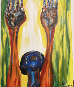 My painting series, “Tree Hands”, uses hands as roots to communicate that we are nature. What is done to nature, is done to us. This specific piece, “Trio” brings up questions about divinity with the number 3. Where do you find divinity? What does divinity mean to you?