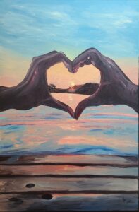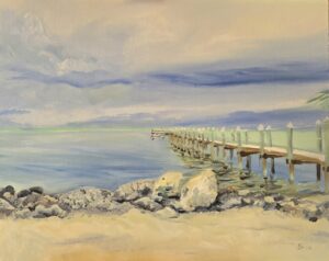 Florida is the second painting of my Skychology series, how looking at the sky can boost your mental health and watching the clouds go by calms us and reminds us there are always blue skies. This painting is of an overcast sky, but the tone and the ocean create a calm mood that brings the viewer to appreciate the image and sense of place.
