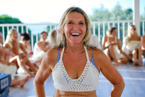 …And she likes to make the yoga fun and share a few laughs whenever possible too.