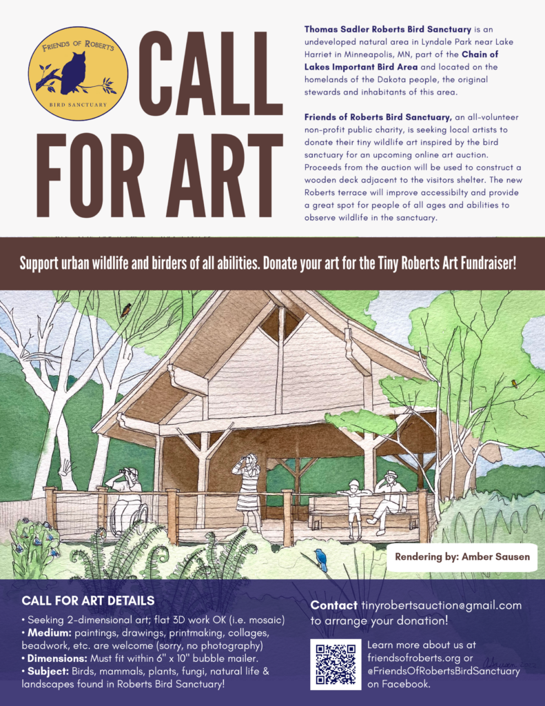 Support urban wildlife and birders of all abilities. Donate your art for the Tiny Roberts Art Fundraiser!