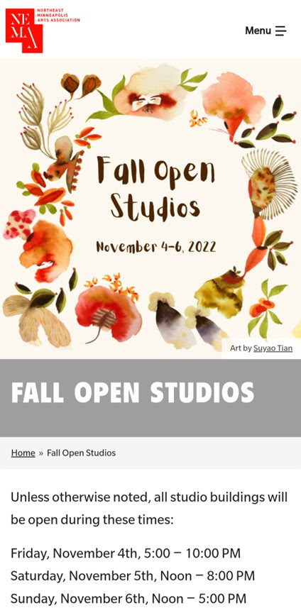 Attend the Northeast Minneapolis Arts Association’s Fall Open Studios on these dates: