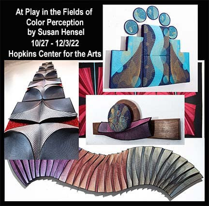 Susan Hensel has a solo show. AT PLAY IN THE FIELDS OF COLOR PERCEPTION, opening at the Hopkins Center for the Art, 10/27/22 through 12/3/22.