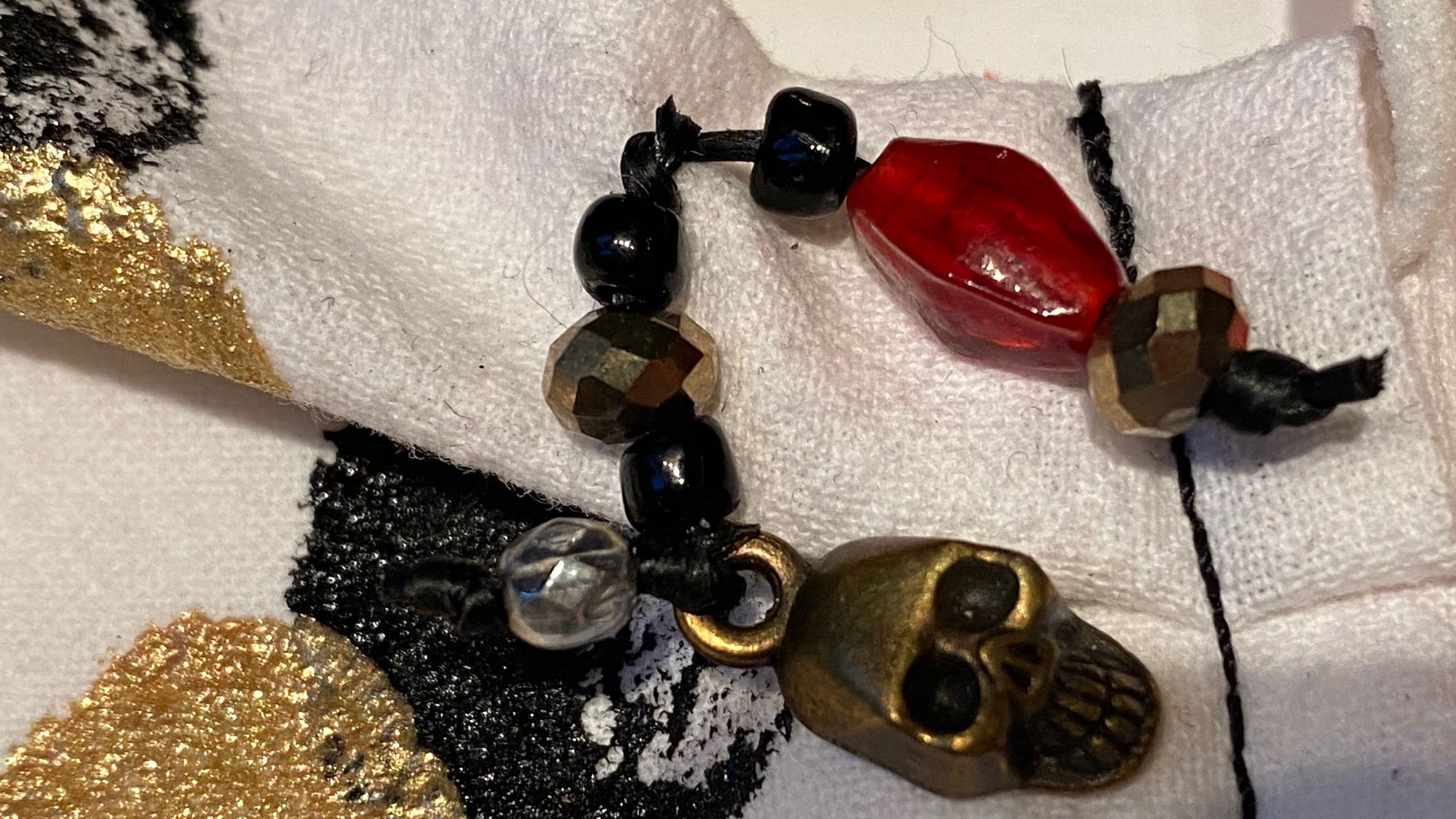 104 Hand printed skull bronze skull charm D