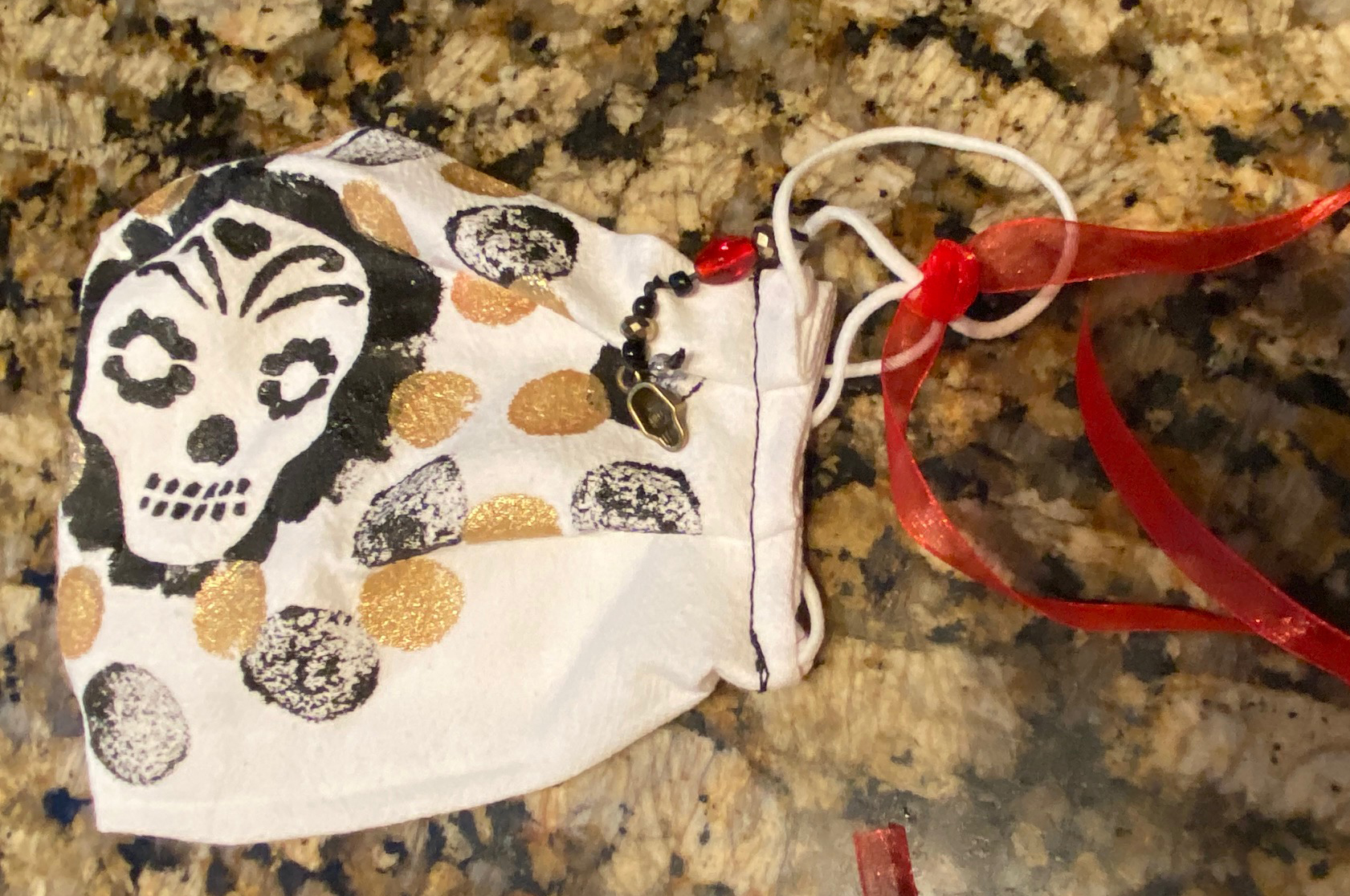 104 Hand printed skull bronze skull charm