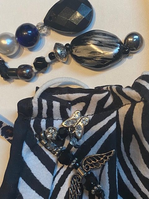 #142 Zebra Rhinestone ALL Silk with ribbon embellishments D
