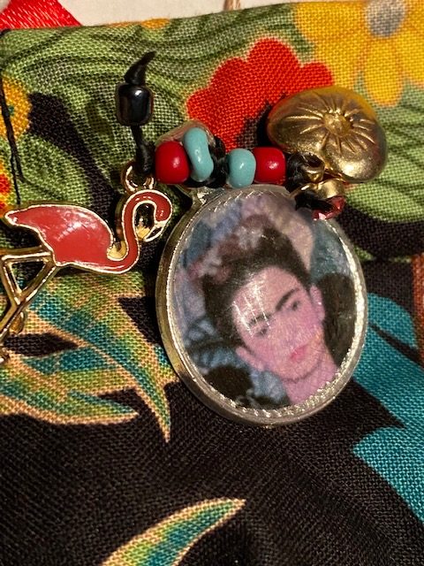 46 Frida fabric, cabochon, milagro and flamingo charms D $40.00