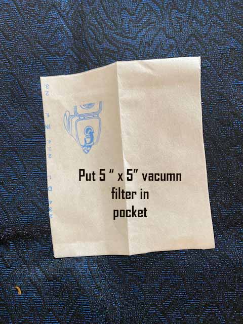 8 . Put vacumn filter 5 inch by 5 inch in pocket