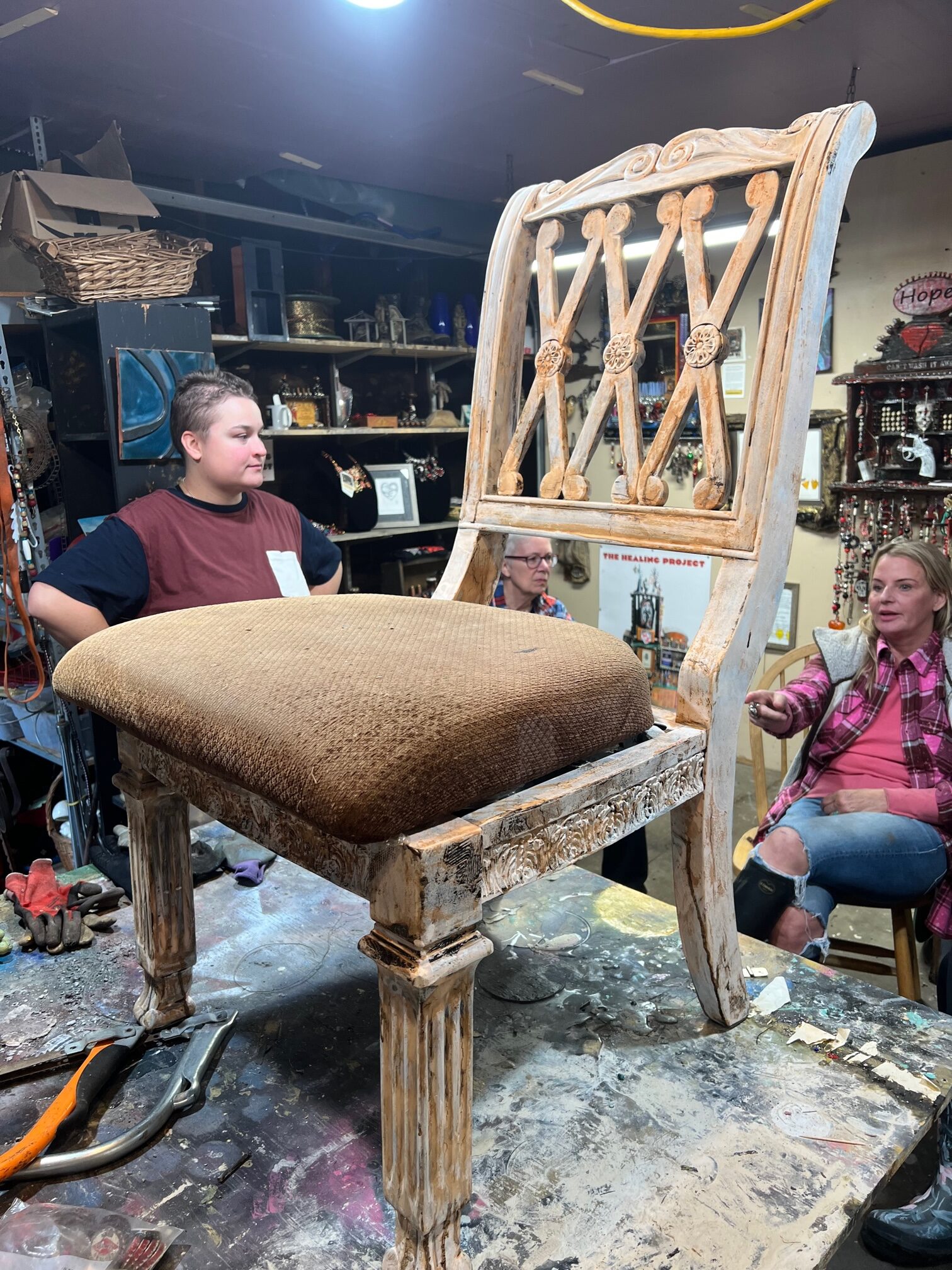 Frances, Annie, and the group discussing project options with the chair