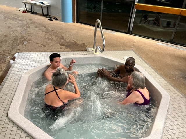 Hot tub, still talking about ideas with Candy, Apollo, Herman, and Deb