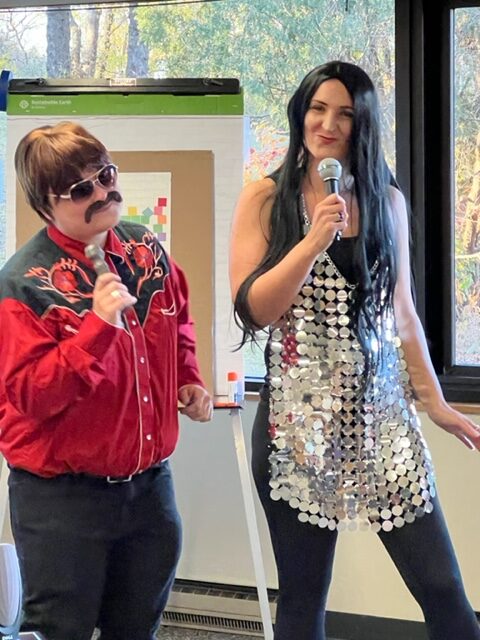 Frances and Kelly as Sonny and Cher for drag promo entertainment