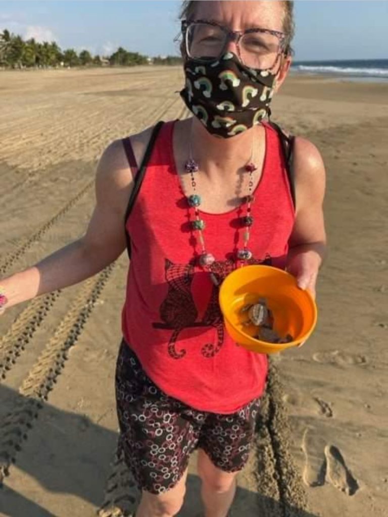Layl with her turtles to release