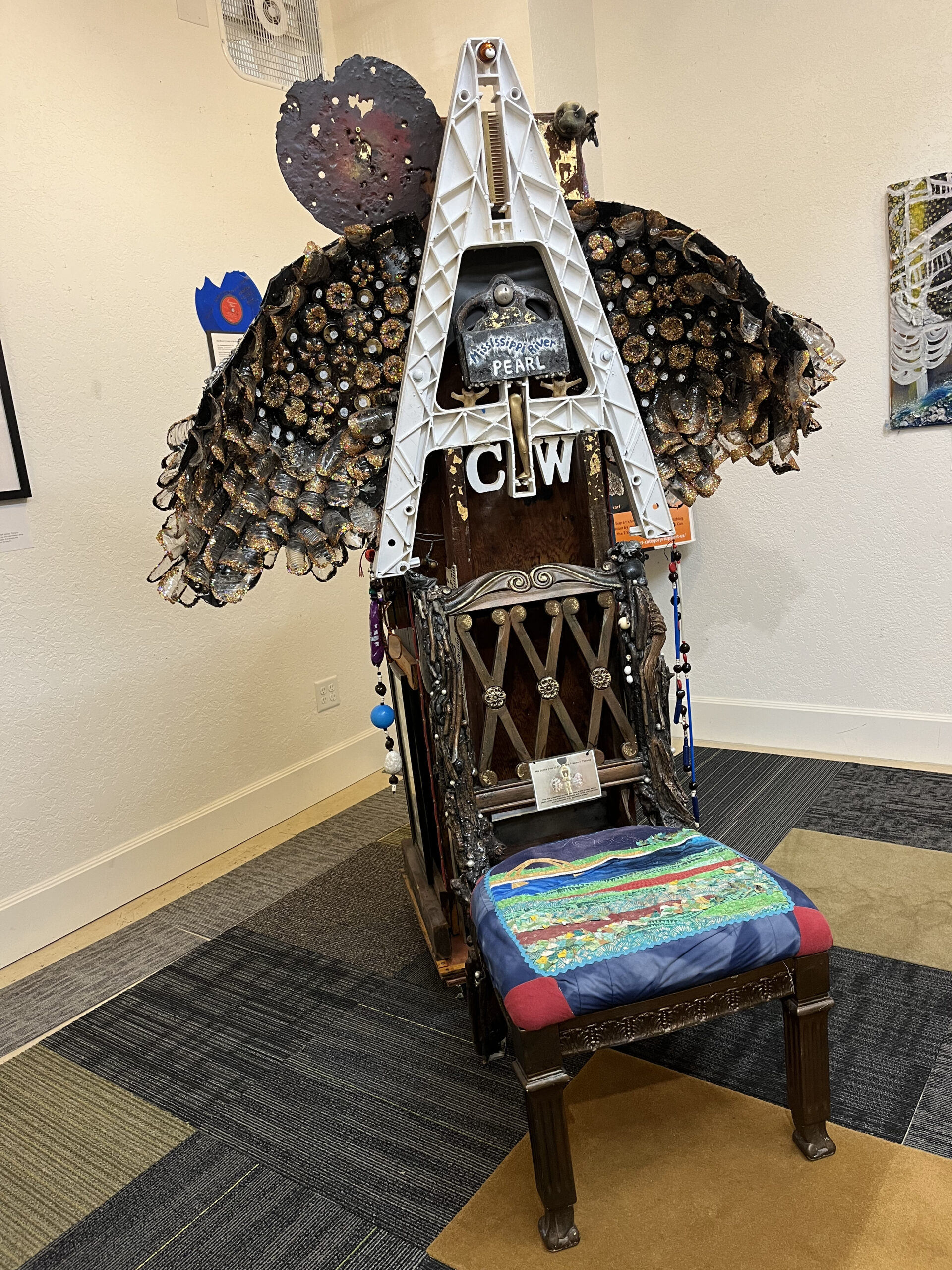 The Pearl is an interactive sculpture that a group of 11 ACW members created together using trash collected from the Mississippi River. Come sit on the throne and take a selfie or open one of the 21 cabinet drawers to find a memento. Read about the sculpture here: https://www.arttochangetheworld.org/mississippi-management-and-watershed-project