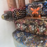 Antique painted Brass Door Knob, Beads, embossed metal, Milagros, mariposas (butterflies).
