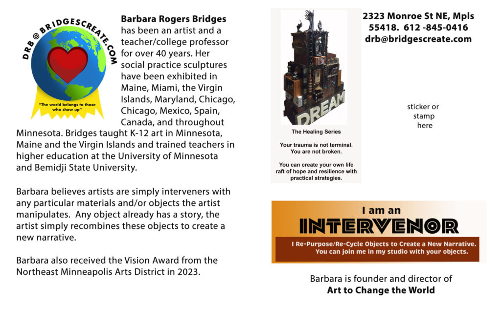 Example of Artist Passport page. Leave at least 1/2 in between copy so the booklet can be assembled 4″ x 5″ .