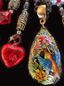 Handpainted enamel from Patzcuaro by Adriau Ruiz, tourquoise and beads.