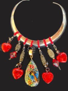 glass hearts, beads