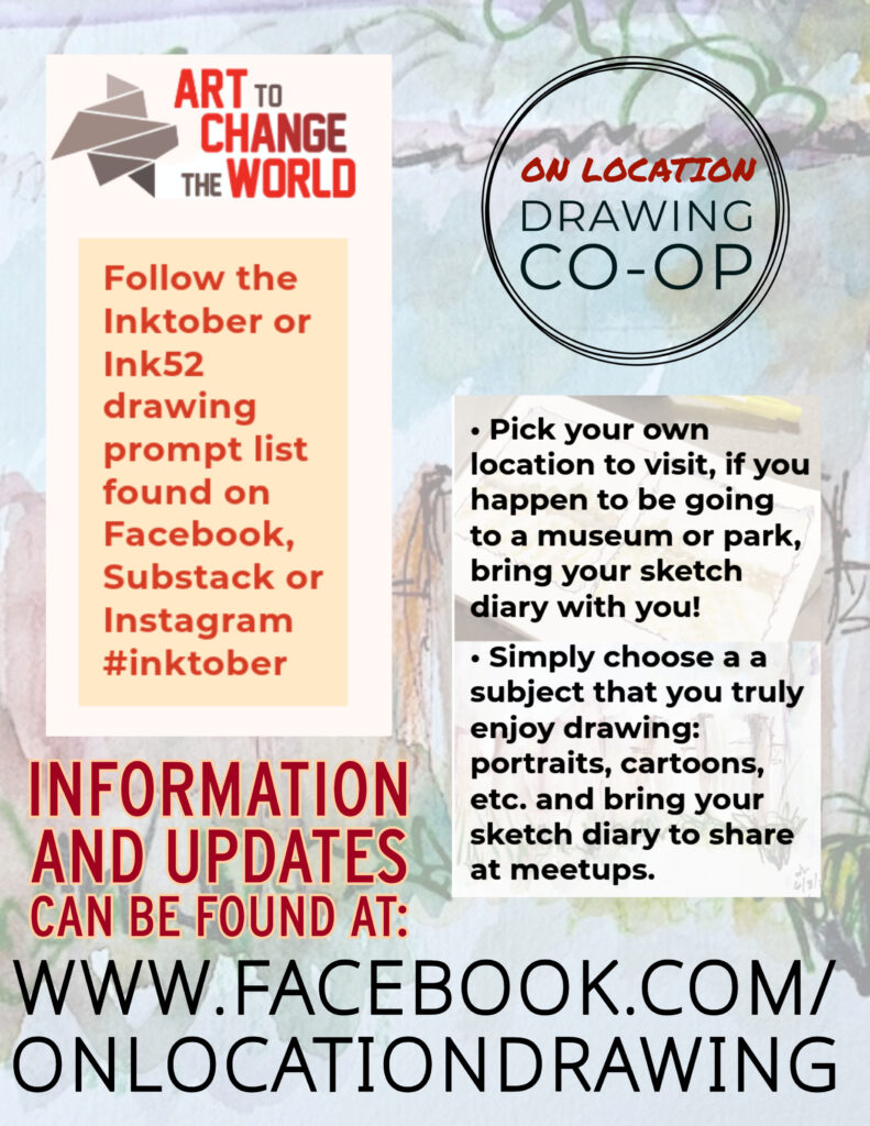 The History: The idea originated in 2016 when Debra Ripp began drawing the random items piled under the awning of her garage. Deb decided to invite her friend Catherine Palmer to join her in drawing the items in her backyard. Soon they were asking others to come over and began to bring food to share before they knew it the group had grown and they were drawing a few different backyards within the group.