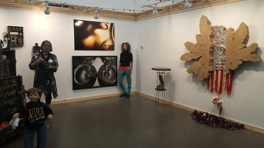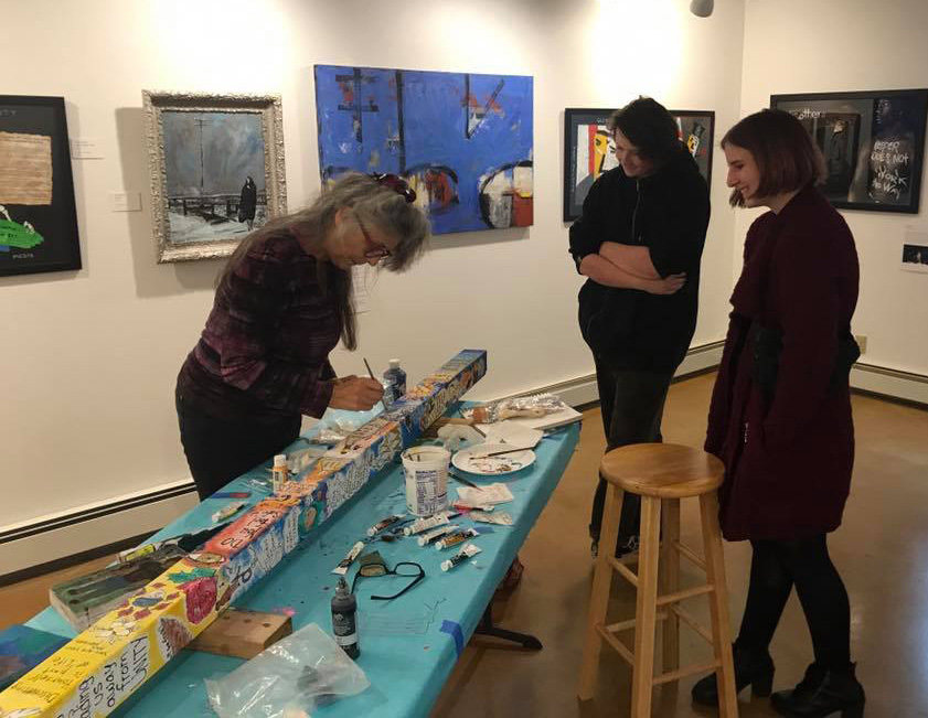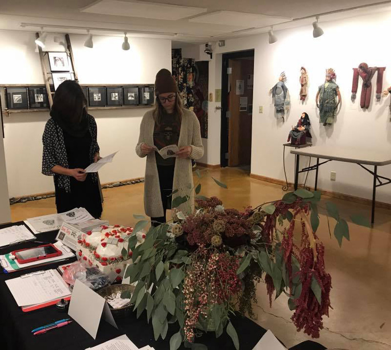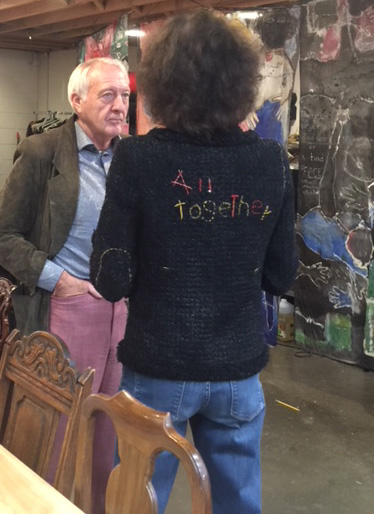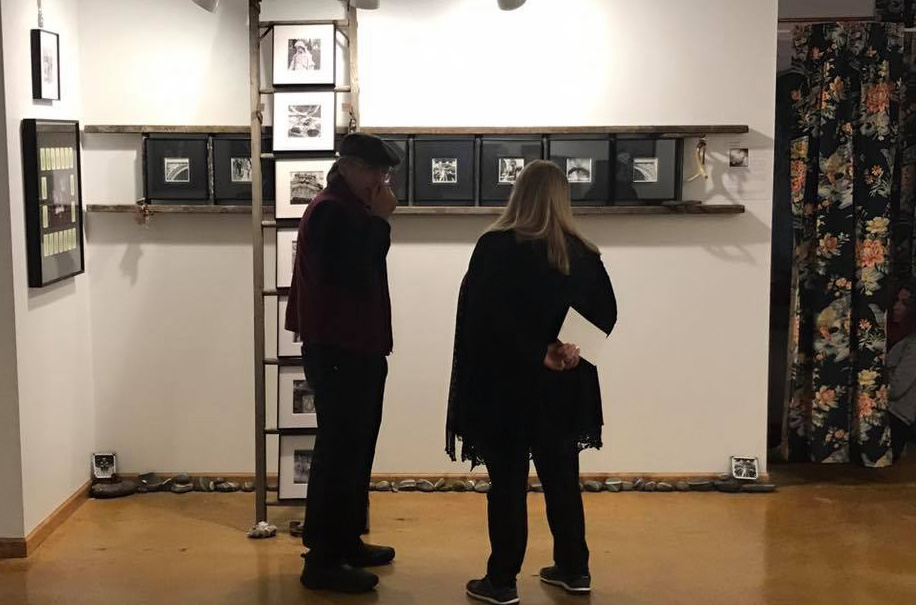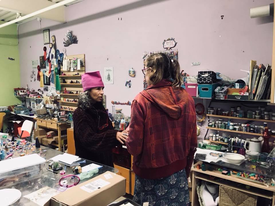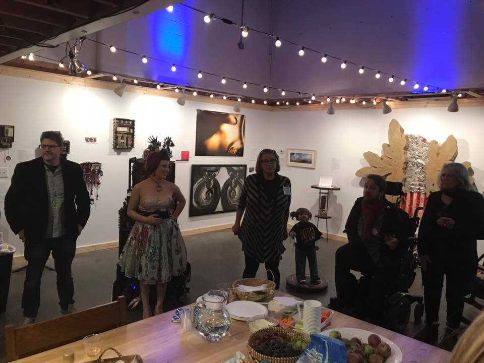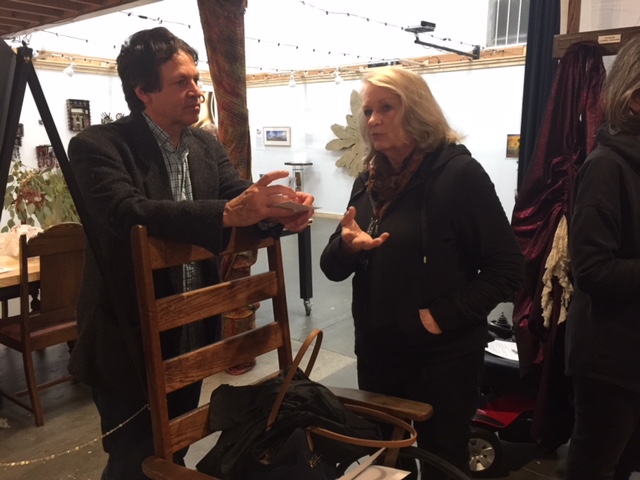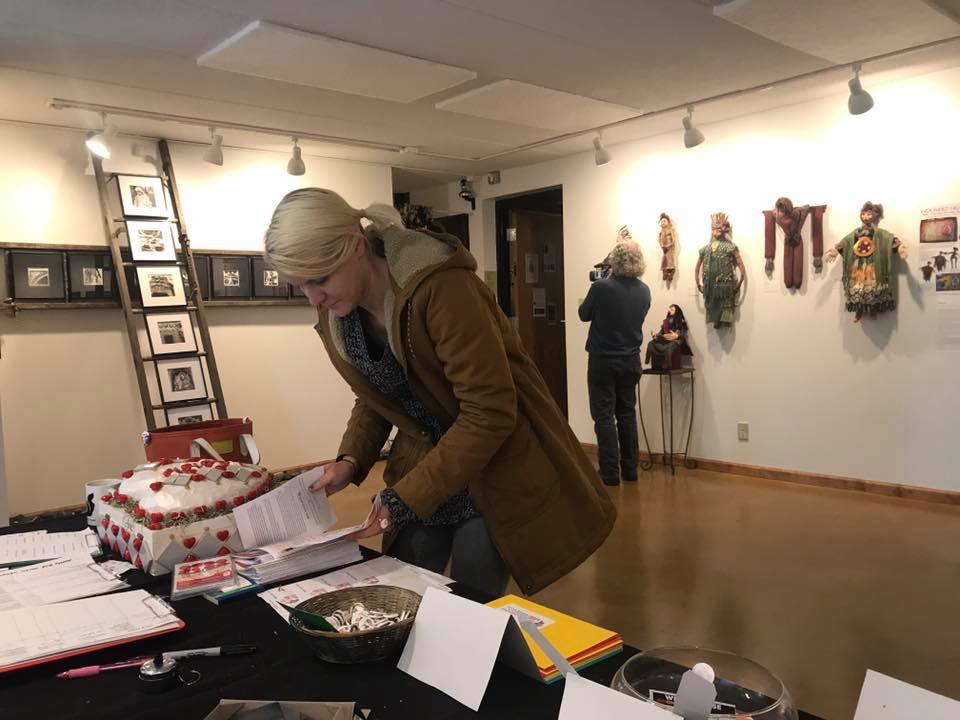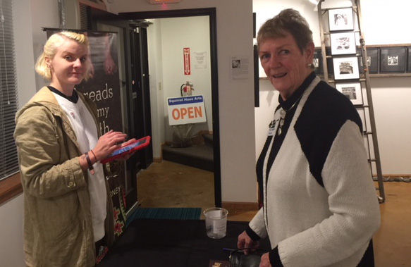 Ballerina does tech. Danielle- owner of BorealisBorealis Dancers warm upEsparanza (hope) collects feedback for Barbara Bridges’ work on RecoveryHerman Milligan Contemplates in Anne’s CoveJill Waterhouse and her work.Artist made nametages for the VIP Friends FundraiserBarbara’s See, Say. DO neck piece. Get it?Sarah Teske and Barbara wrangle the “Square”Craig Harris and tech specialist Jim, make it happenAnne in her CoveBarb Kobe and the healing dollsInstalling Rebecca’s Union Label workPreparing in Barbara’s studio