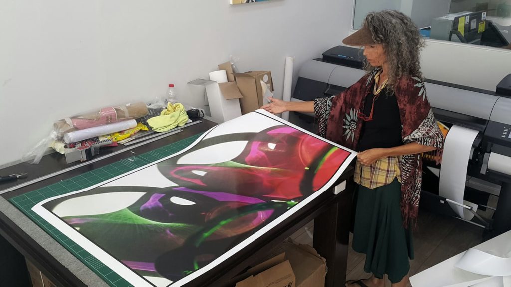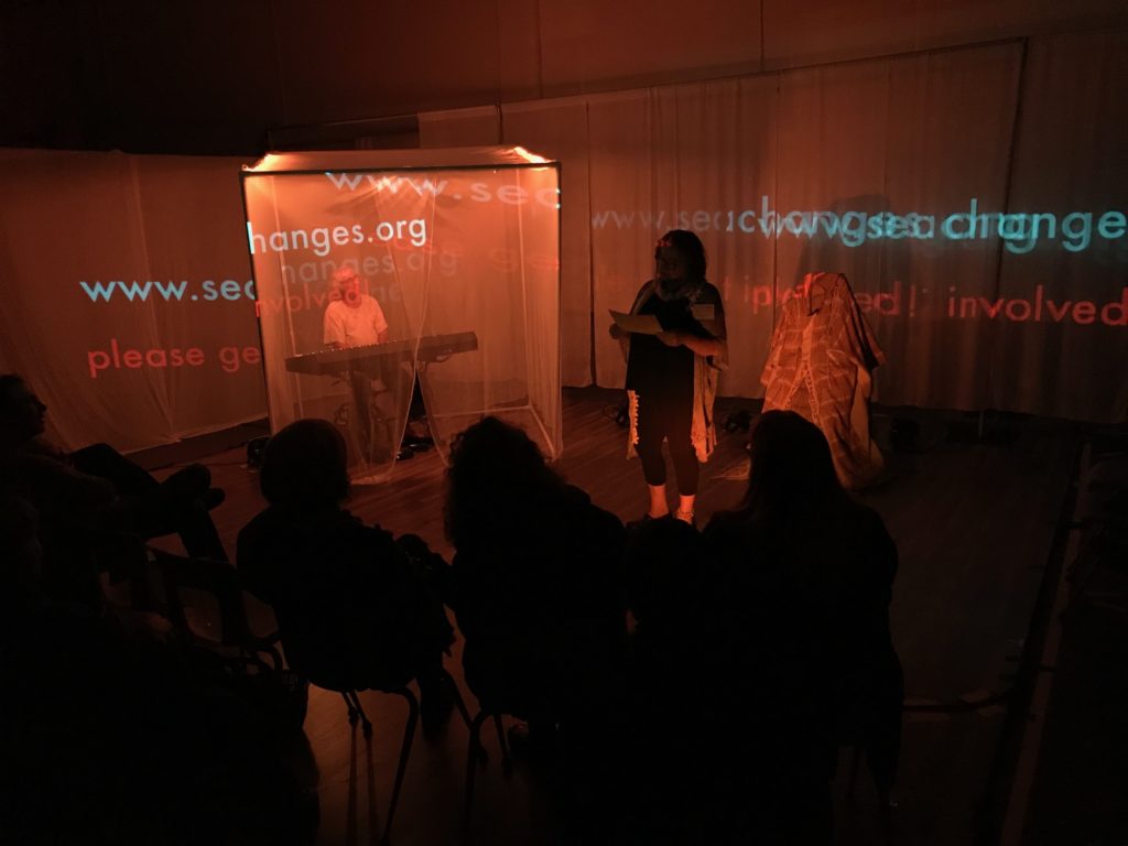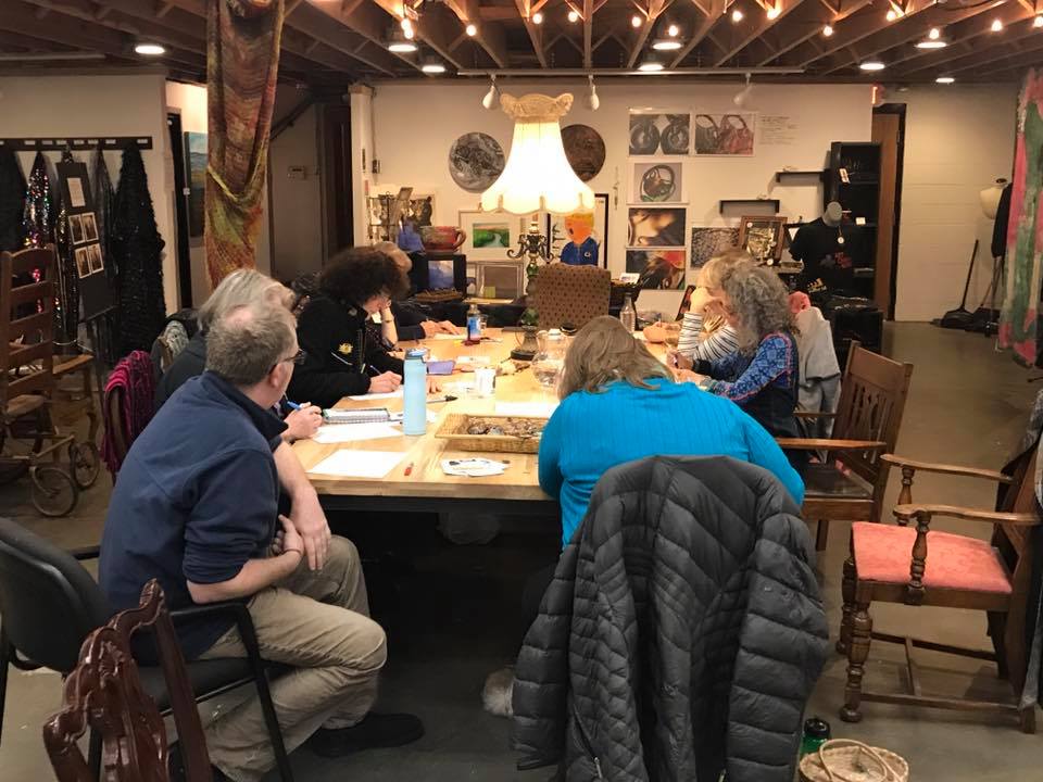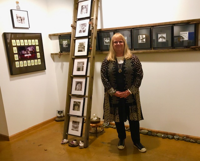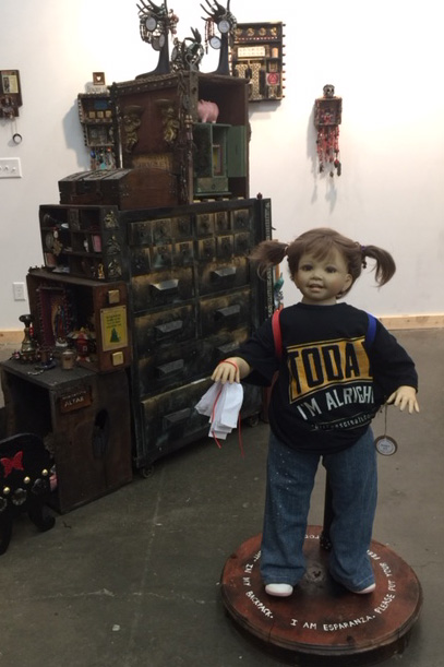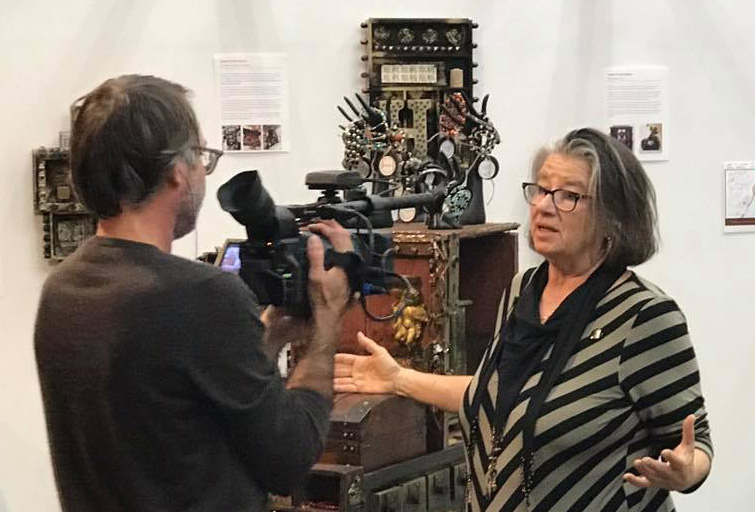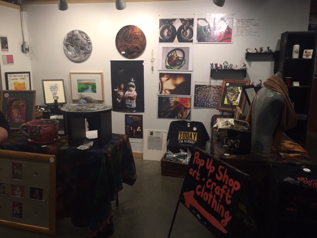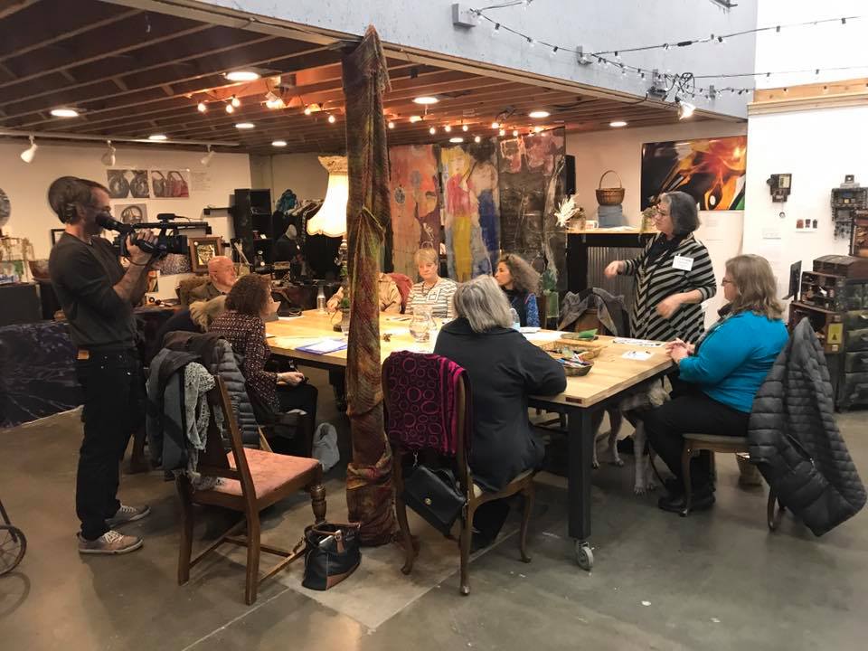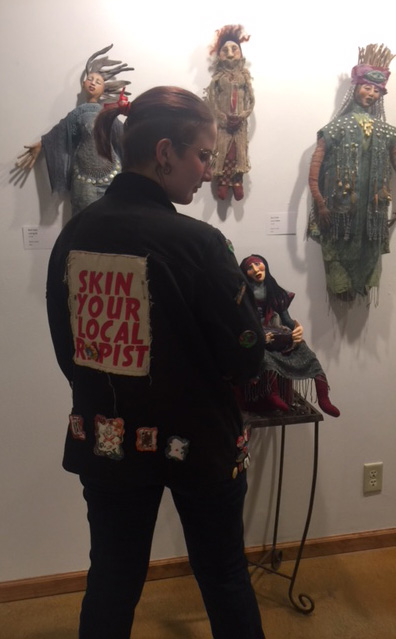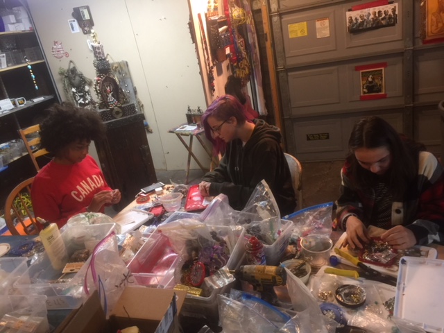 Ballerina does tech. Danielle- owner of BorealisBorealis Dancers warm upEsparanza (hope) collects feedback for Barbara Bridges’ work on RecoveryHerman Milligan Contemplates in Anne’s CoveJill Waterhouse and her work.Artist made nametages for the VIP Friends FundraiserBarbara’s See, Say. DO neck piece. Get it?Sarah Teske and Barbara wrangle the “Square”Craig Harris and tech specialist Jim, make it happenAnne in her CoveBarb Kobe and the healing dollsInstalling Rebecca’s Union Label workPreparing in Barbara’s studio