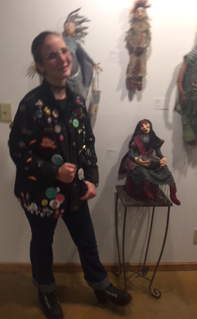 Kira visits Barbara ‘s studio and Reflecting PoolNick prepares for his poetry readingJill and Take the KneeSarah and Sue HelgesonBarbara in her studioVisitor with Madelynne’s Satin of KnowingnessSkyler, Barb and ShiraSusan came to save the Opening Day, day.Shira in Anne’s Contemplation CoveBorealis Dances in their “Talk-Back”Majentah in performanceErik and MikeBoard Member Lynn Olson at Satin of KnowingnessSkyler with button jacketSarah with great grandma’s Swedish dollsSkylerSee. Say. DO storeStanding Room Only on VIP Threads of Our Cloth performance.Jim and Craig