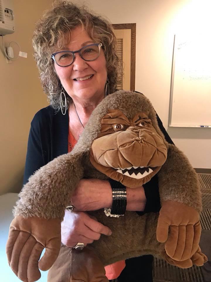 Barb and her gorillaSouth High Compassionate ConversationsSouth High LeadersPeace PostsPeace Posts 2