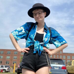 I am a Disabled, Queer, Trans, NonBinary, white, member of an interracial marriage, Wisconsin born, artist, and bleeding heart. I hold a bachelor’s degree in American Sign Language Interpreting and a master’s degree in Library and Information Sciences.