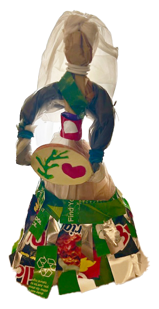 Build a simple yarn doll that repurposes plastic bags and single use plastic wrappers. These dolls will then receive a symbol painted by its owner to help remind them about the need to recycle and reuse materials.