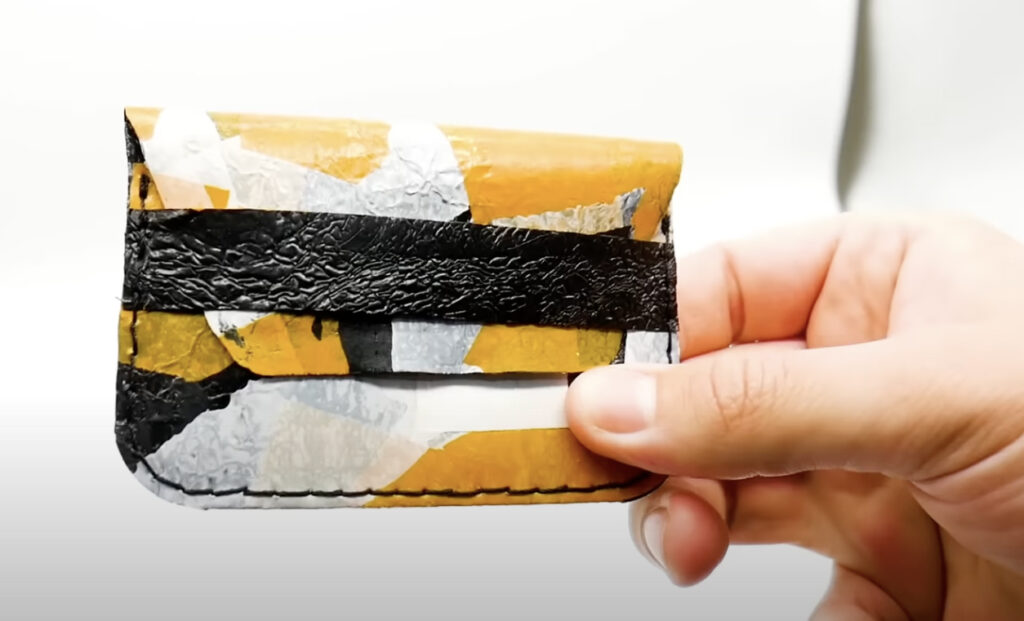 Use single-use plastics to create your own wallet! Choose your colors to create “fabric” for your wallet then use colorful thread to sew it together.