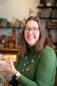 She has experimented with many mediums in her life- a few include painting, bronze casting, screenprinting, and scarecrow making. For the last 15 years her main medium has been Polymer Clay.  She uses the clay like solid paint, assembling her landscapes & nature scenes like a mosaic. She loves plants and landscapes, and was Artist-in-Residence at Glacier National Park in 2017.