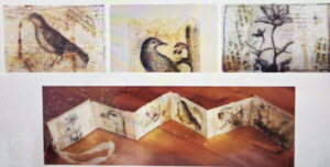 Image transfer and bright little paintings on tea bags. Make sachets bags (lavender/cinnamon), jewelry gift bags, or decorations from simple teabags.