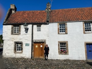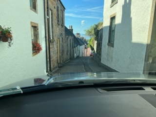 People often ask me, “What? You travel alone?” Here is an example of what happens. This is Graham Caie, retired president of Glasgow University. He rode by while I walking up the 10 foot wide road in his white Jag looking for the stones in Kilmartin. I had GPS and helped him find them! Yes, he asked me to jump in and I did. ha ha We got talking about how Edinburgh was a madhouse, partly because Diana Gabaldon was there. “I met her” , he said. “Where”, I asked. “When I gave her an honorary doctorate”, he replied. You can’t get away from Outlander in Scotland. LOL