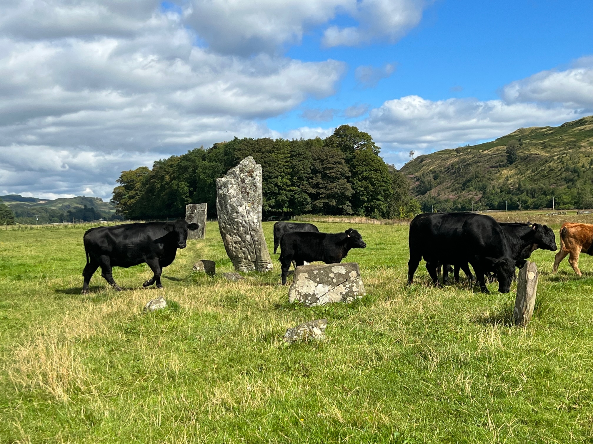 This farmer just let’s the visitors wander through his cow pasture. Kilmartin Glen is an area in Argyll . It has the most important concentration of Neolithic and Bronze Age remains in mainland Scotland.. In the village, Kilmartin Museum[3] explains the stories of this ancient landscape and the people who dwelt there. There are more than 800 ancient monuments. Monuments include standing stones, a henge monument, numerous cists, and a “linear cemetery” comprising five bu…
