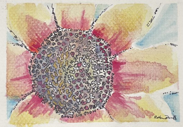 Original watercolor and ink painting, 4″ x 6″, matted in tan to 9″ x 10″. $95.00
