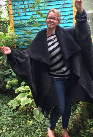 Rebecca Ratzlaff Title Wool Coat: Media Wool Artist Description of Work This Fits All Unisized wool coat from Issey Miyake’s pattern 1476, for Vogue was created by ACW Artist Rebecca Ratzlaff, creator of the “Look for the Union Label” work (the giant flag). Rebecca is a gifted textile artist and this cozy, warm wrap for autumn will make you warm and stylish in a one-of-a-kind art work to wear. In the spirit of the ACW collaborative – the fabric was donated by ACW artist Candy Kuehn.