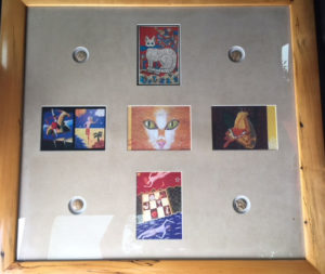 Montage . This one woman wonder is Croatian. The cards are scenes from the countryside and are prints of original works. They are set off with agates and framed with spalted maple.