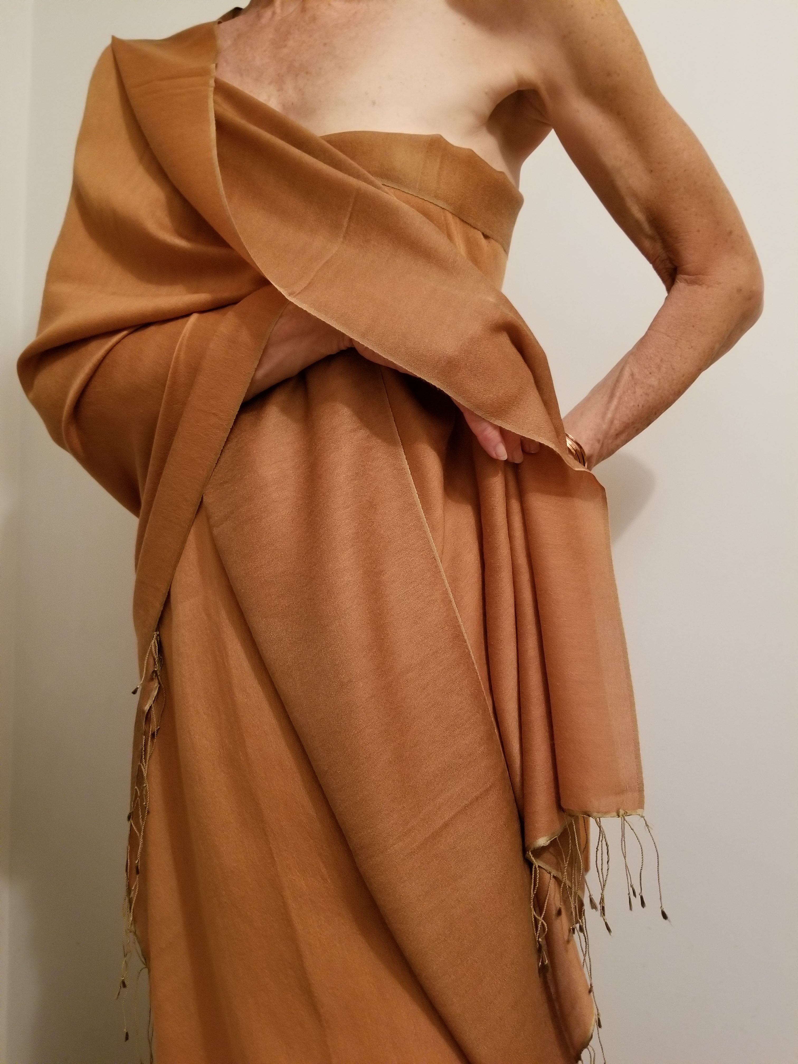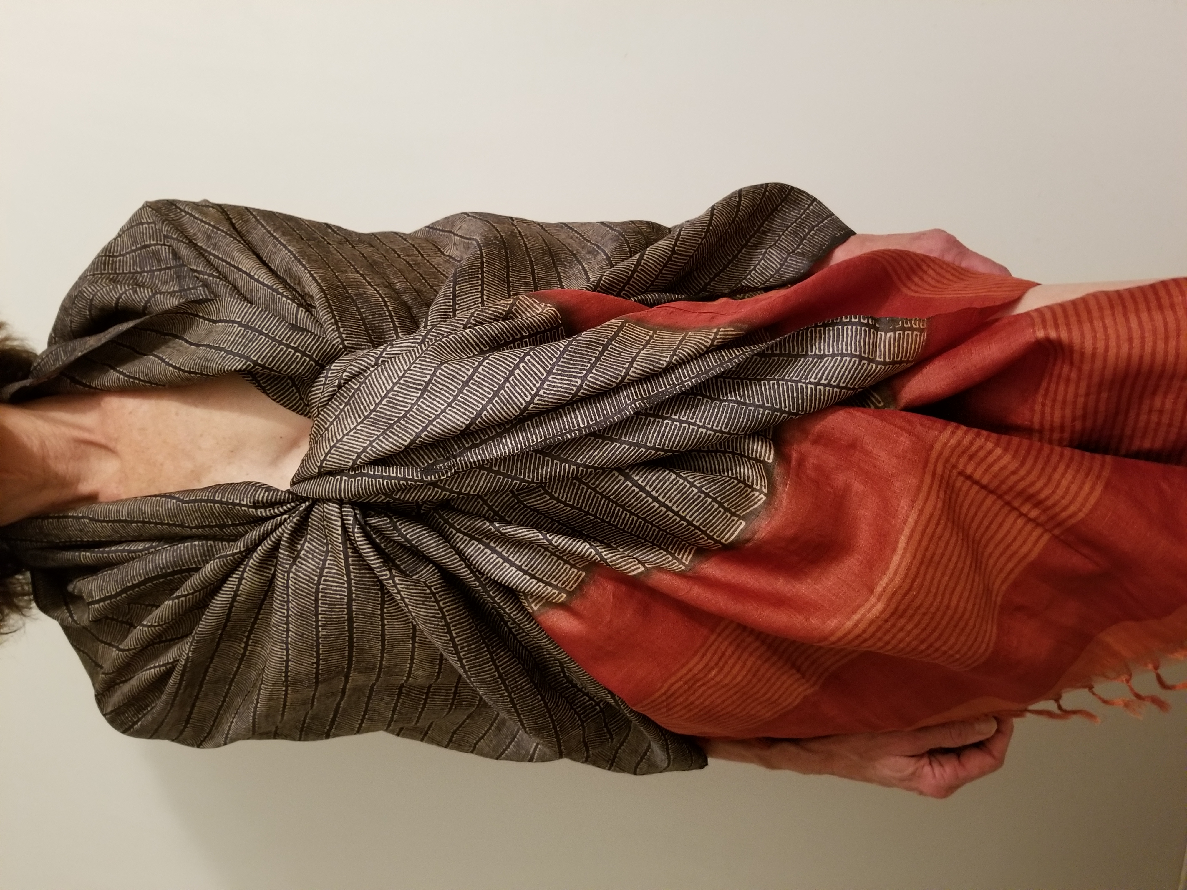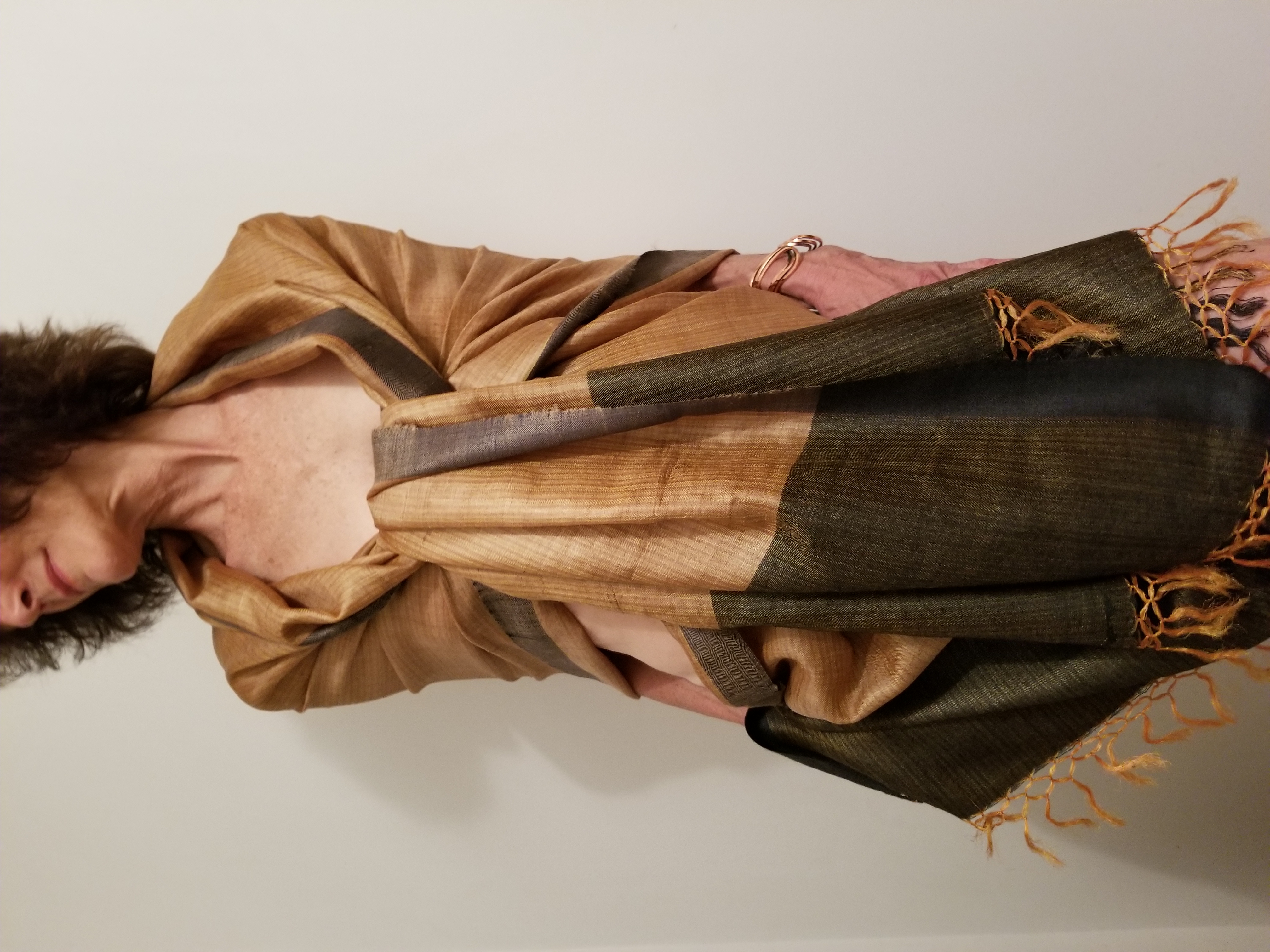 The shawls/scarves – all in warm, luscious earth tones – include: