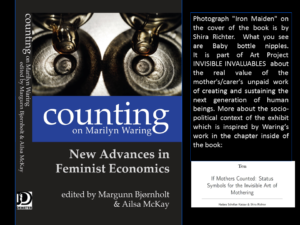 It is also featured on the front cover of the book COUNTING ON MARILYN WARING-NEW ADVANCES IN FEMINIST ECONOMICS (link)- published by Demeter press. The book features several chapters about the various ways the groundbreaking book “Counting for Nothing” by Feminist Economist Marilyn Waring (88′), affected research, policies and activism in the world.