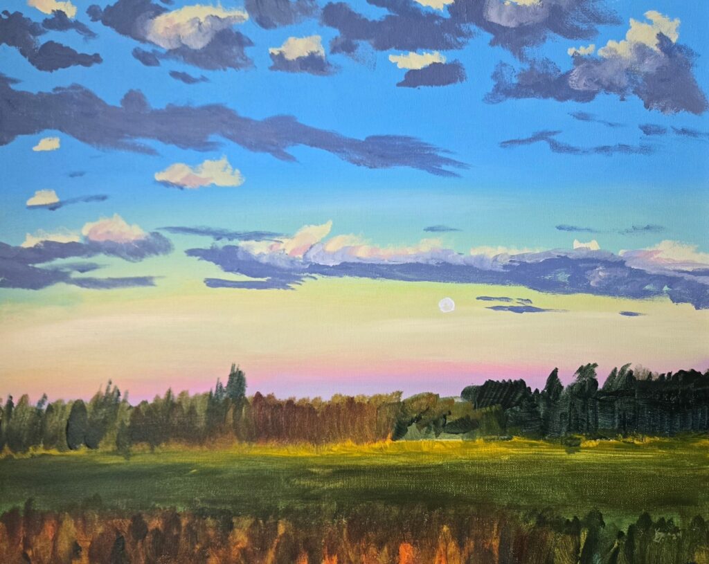 White Moon is the beginning of my Skychology series, how looking at the sky can boost your mental health and watching the clouds go by calms us and reminds us there are always blue skies. My focus is the full moon in this image that is hardly noticed when the opposite view is a sunset, but just as beautiful, sometimes, if not more. It’s a reminder to see the beauty in all of nature at any moment.