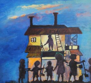 Without support, there can be no safe haven for individuals and families. Achieving safe, secure housing that is affordable is often illusive. It has been a struggle for my own family in the past and continues today for my adult children. Due to unforeseen circumstances, situations change, sometimes suddenly and one finds themselves without shelter. Through my art, I want to shed light on this important issue but also provide a sense of hope.
