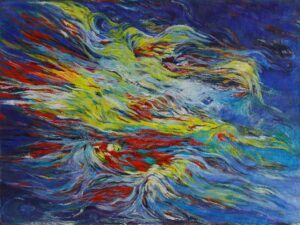 I am continually amazed and intrigued by this incredible, beautiful existence we share, and seek to convey its energies in my artwork. The painting, “Moving Forward,” describes social currents interwoven, and despite complexity and challenges, we coalesce and bond over shared dreams and aspirations. Individually, we come together as one people. Instagram: Paul _Kellett _US