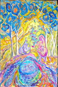 This painting is based on a dream I had where I encountered a kangaroo by a mystical pool of water in a forest. This dream affected me strongly, and left me with a happy, peaceful feeling.