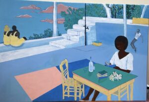 being an island; the solitary reader contrasting with two young women perhaps sisters,
