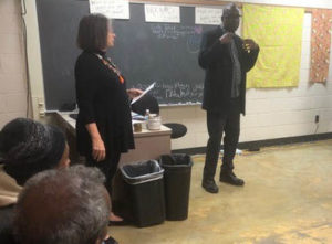 Representatives from funders, The Givens Foundation for African American Literature, Herman Milligan and Art to Change the World Director, Barbara Bridges, project manager, Laura Mann-Hill and member, Martha Bird, led the group in a unity activity around the See. Say DO. Peace Pole. Thanks to ACW artist Wesley May for donating his See. Say. DO mural. Mohamed translated and led the group in earning how to say How are you and I am fine in Somali. Everyone enjoyed the Somalian tea and Latino snacks sponsored by South High School. We had several special guests including Ben Mchie, from the African American Registry.